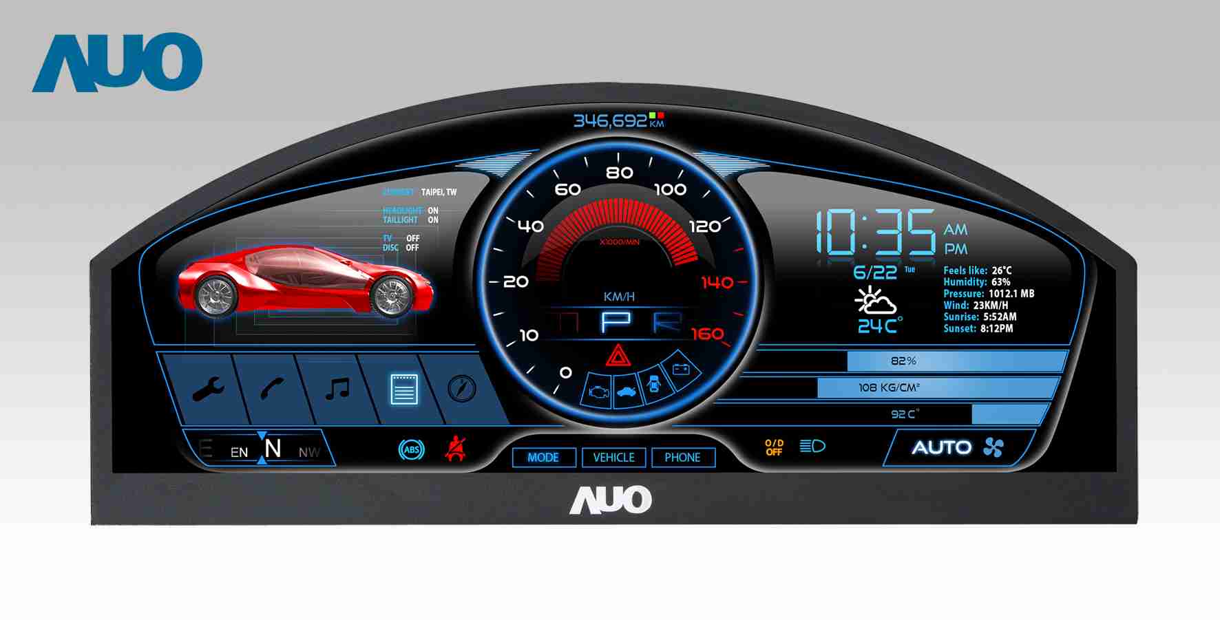 尊时凯龙 12.3吋超高解析异型切割车用面板,,,,拥有流线外观及精细画质
